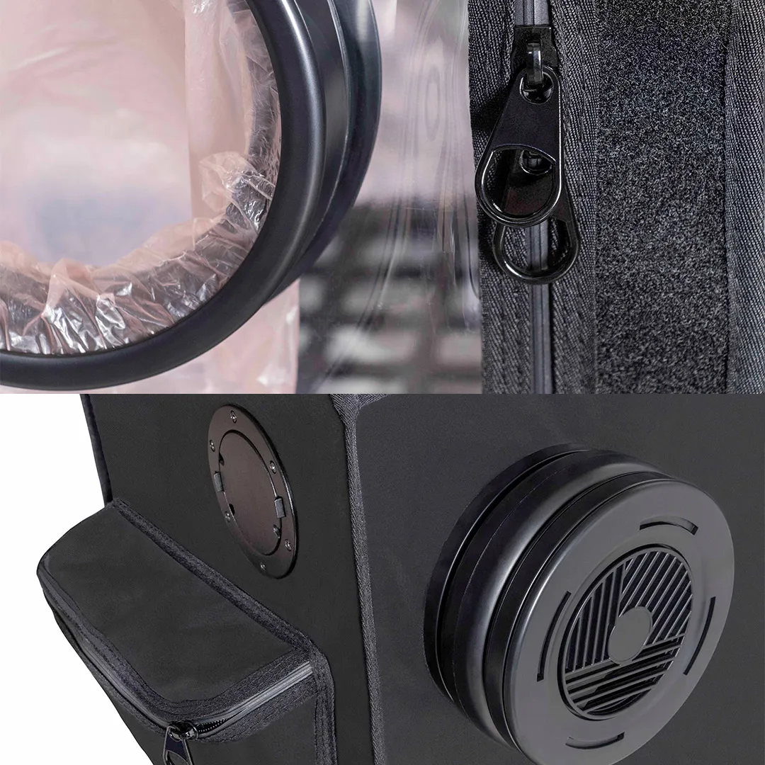 Asimismo, su diseño ergonómico y práctico facilita el acceso al interior del armario. Las cremalleras de alta calidad permiten abrir y cerrar el armario sin esfuerzo, manteniendo el entorno hermético cuando es necesario. Esto ayuda a evitar la contaminación por agentes externos y garantiza un espacio limpio y seguro para la producción de hongos comestibles.