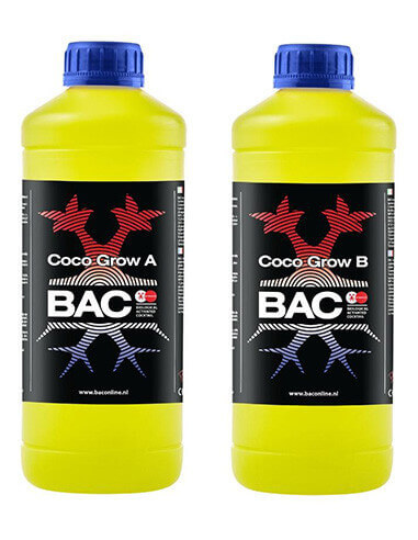 BAC Coco Grow A+B es la solución ideal para cultivadores que buscan un crecimiento sano, estable y de alto rendimiento en cultivos con fibra de coco. Una base sólida para una cosecha abundante.