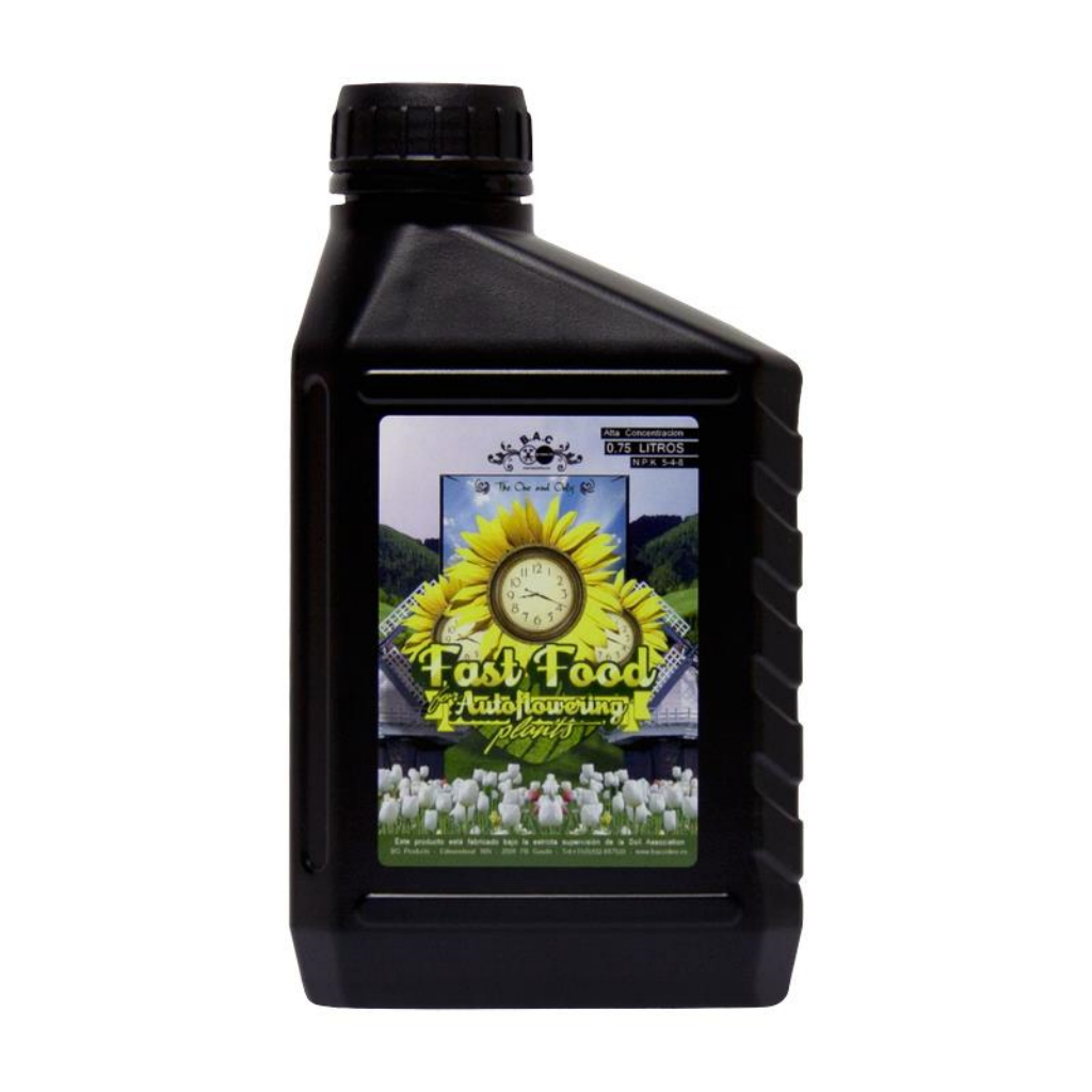 Fast Food Orgánico de B.A.C es un fertilizante desarrollado específicamente para utilizar con plantas autoflorecientes de rápido crecimiento, basado en un solo producto para los dos ciclos, combina con gran maestría la cantidad idónea para las necesidades de este tipo de plantas que deben desarrollarse en un ciclo muy corto.