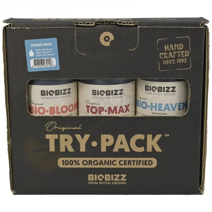 No renuncies a lo mejor en hidroponía. Con el Biobizz TryPack Hydro, combinas la eficiencia del cultivo hidropónico con las ventajas de los fertilizantes naturales. Disfruta de resultados notables y sabores auténticos con esta elección líder en el mercado.
