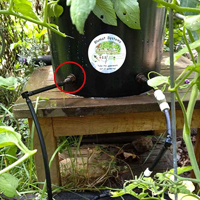 - Este conector de depósito se conecta a un barril de lluvia o tanque de almacenamiento de agua