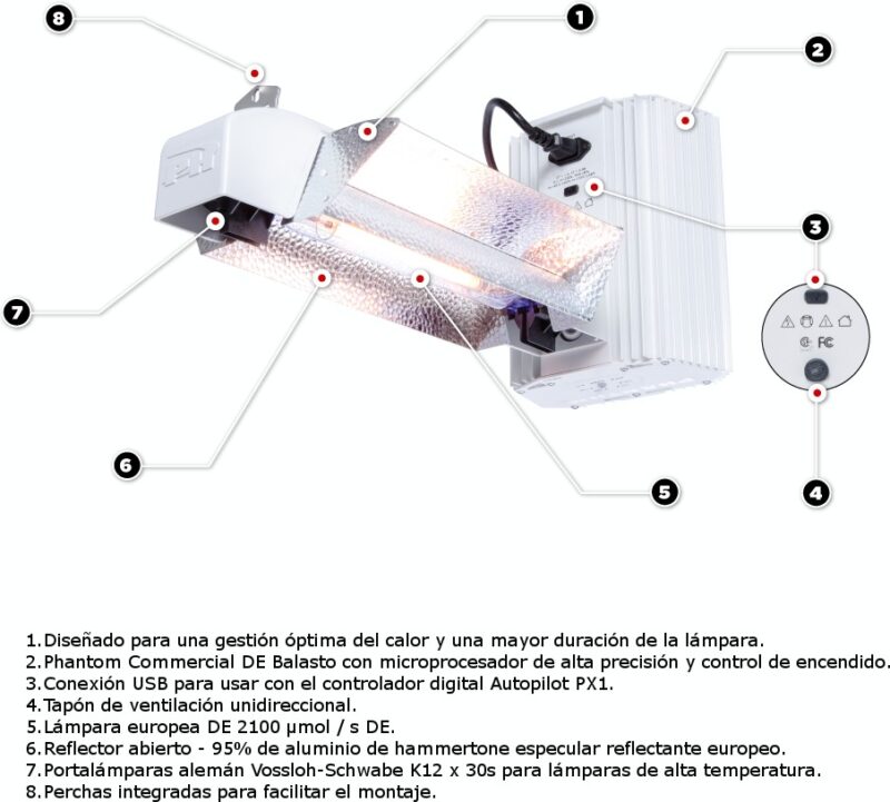 En el corazón de este sistema se encuentra el balastro Phantom DE, diseñado con un microprocesador de alta precisión, que lo hace altamente eficiente y extremadamente confiable.