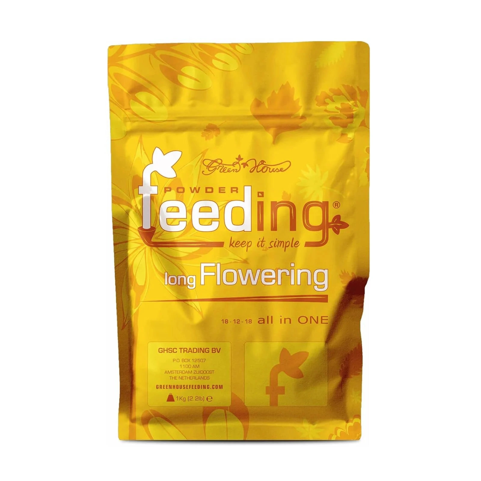 Green House Feeding Long Flowering es un fertilizante en polvo todo en uno, especialmente formulado para variedades de floración larga (10 semanas o más). Su fórmula precisa y equilibrada proporciona todos los macronutrientes y micronutrientes que las plantas necesitan durante todo su ciclo de vida, desde la fase vegetativa hasta la cosecha.