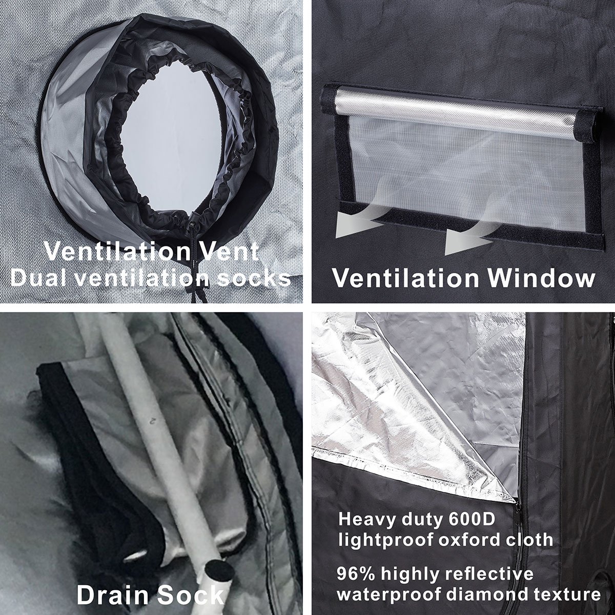 Su estructura metálica reforzada y su lona de alta resistencia lo convierten en una opción ideal tanto para cultivadores domésticos exigentes como para productores profesionales que buscan un espacio fiable, duradero y fácil de montar.