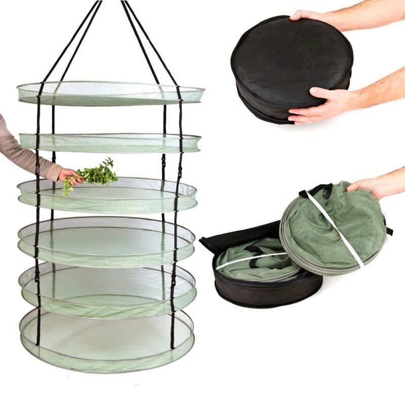 Malla de Secado Dark Box Dryer es una malla de 90 cm de diámetro preparada para colgar para el secado de flores. Muy fácil de montar. Además, guárdala en su bolsa cómodamente cuando termines el proceso de secado. Su sistema pop-up para montar y desmontar te hará de esta una tarea sencilla. Esta Malla de Secado Dark Box Dryer está especialmente pensada para que la cosecha sea extendida por los distintos niveles y, de esta forma, se pueda oxigenar por todos sus lados, evitando la aparición de moho y hongos. La malla de secado dark box dryer de 6 niveles mide de alto 180cms cuando está totalmente desplegada. Mantiene un espacio suficiente entre los distintos niveles para garantizar un buen secado. Monta tu malla de secado dentro del armario de cultivo o en el lugar que consideres, pero siempre evita que el último nivel toque el suelo, para evitar dañar las flores de este nivel. Con sus niveles extensibles, su máxima altura es de 180cms, pudiendo utilizarla más plegada, con menos altura si los niveles inferiores no necesitas utilizarlos. Consigue un secado óptimo con la malla de secado Dark Box Dryer. Esta malla de secado dark box dryer está disponible con uno o con seis niveles. Elige la opción que más se ajuste a tus necesidades.