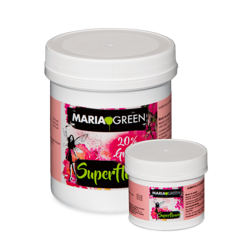 Maria Green SuperFlower es un compuesto especializado para la fase de floración, favorece el desarrollo de cogollos de mayor peso y dureza. Su composición es totalmente orgánica y basado en materia 100% natural. No esperes más y empieza a disfrutar de unos cogollos de mucha más calidad. ¡Descubre Ahora Super Flower de María Green!