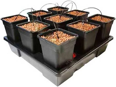 El Sistema Hidropónico Wilma V2 XXL 9 18L es un gran sistema de cultivo para cultivadores nuevos y experimentados. Todos los sistemas Wilma se pueden montar en minutos. Solo tienes que colocar el depósito en el lugar correcto de tu cuarto de cultivo, poner las bandejas superiores sobre el depósito y luego colocar las macetas sobre él. Instale la bomba y las tuberías de distribución. Llene las macetas con el sustrato (tierra, coco, lana de roca, guijarros de arcilla). Lleve las líneas de goteo desde la tubería a cada maceta. Conecte el gotero correcto para el sustrato que está utilizando (utilice los goteros de inundación para los guijarros de arcilla y utilice los goteros de flecha para los sustratos con mayor retención de agua – tierra, coco, lana de roca).