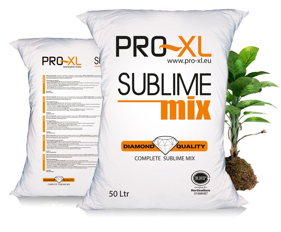 Sublime Mix de PRO-XL es un sustrato poroso con abono equilibrado elaborado a base de la mejor calidad de turba, perlita, cal, pedazos de grava de coco, fertilizantes minerales y oligoelementos como se usan en la horticultura profesional. También lleva una parte de cocos para tener una mejor oxigenación en la raíz. El sustrato Sublime Mix está listo para su uso y es apropiado para diversos tipos de cultivos.