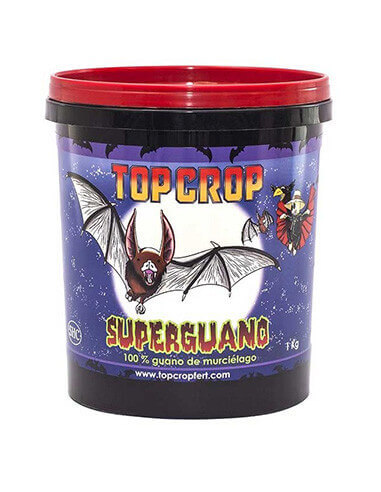 Top Crop Superguano es un fertilizante orgánico de liberación lenta, elaborado a partir de guano de murciélago 100% natural. Este producto destaca por su alta concentración de fósforo y potasio, nutrientes esenciales para estimular una floración abundante, mejorar la formación de cogollos y potenciar el aroma y sabor de la cosecha.